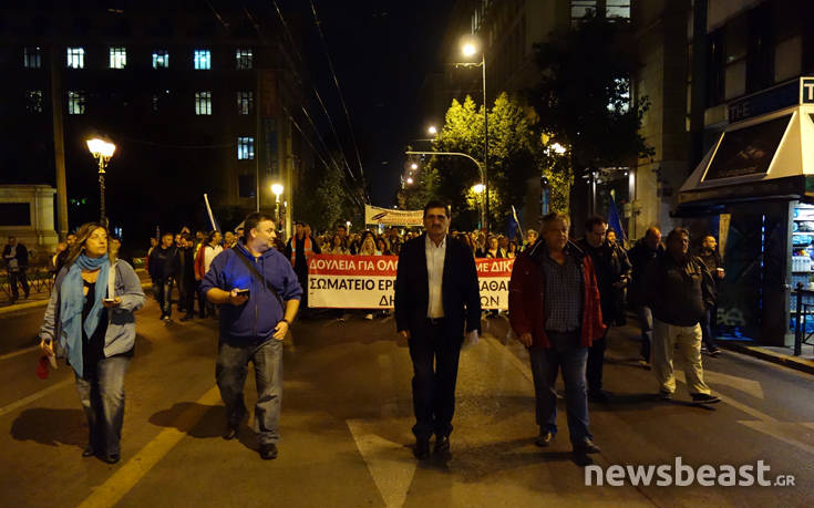 Στην πορεία συμμετέχουν και μέλη από το συνδικάτο Αττικής. Συνολικά διαδηλώνουν περίπου 400 άτομα.