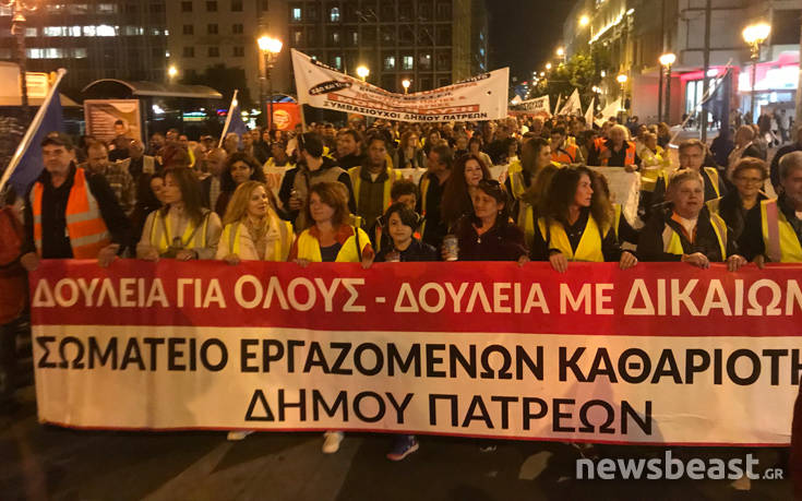 Πορεία στο κέντρο της Αθήνας πραγματοποιούν αυτήν την ώρα εργαζόμενοι στην καθαριότητα από την Πάτρα, με επικεφαλής τον δήμαρχο Πατρέων, Κώστα Πελετίδη.