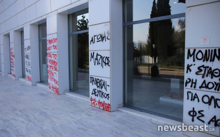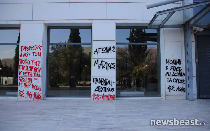 Μέχρι το γραφείο του υπουργού Κώστα Γαβρόγλου έφτασαν οι μαθητές, οι φοιτητές και οι εκπαιδευτικοί που εισέβαλαν, νωρίτερα στο υπουργείο Παιδείας. Ο υπουργός έλειπε από το γραφείο του, ωστόσο οι διαδηλωτές κρέμασαν στον χώρο ένα μεγάλο πανό με συνθήματα.