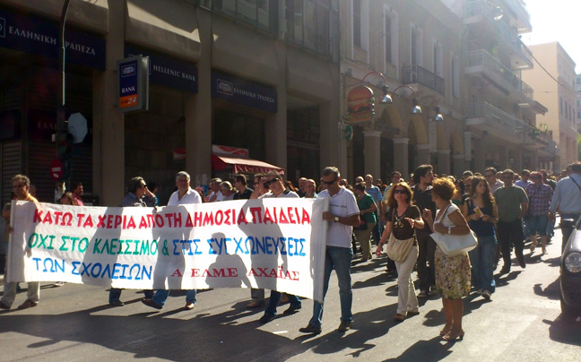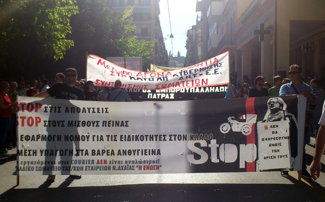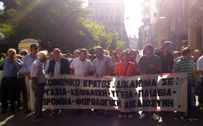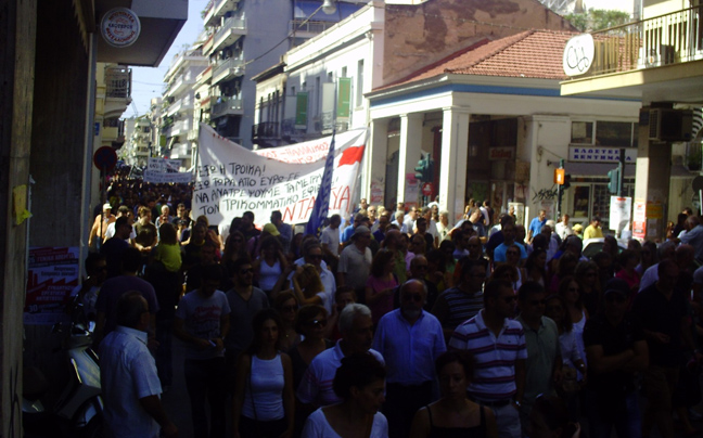 Διαδηλωτές κάθε ηλικίας εξέφρασαν σήμερα την οργή τους στην Πάτρα, στα πλαίσια της 24ωρης απεργίας της ΓΣΕΕ-ΑΔΕΔΥ, ενάντια στα νέα σκληρά μέτρα.