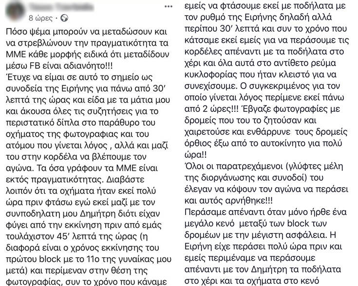 Σχετικά με τις φωτογραφίες που είδαν το φως της δημοσιότητας, υποστηρίζει ότι είναι τραβηγμένες από τέτοια οπτική γωνία ώστε να φανεί ότι ο ίδιος επιδιώκει να σταματήσει τον μαραθώνιο για να περάσει. Όπως, όμως, τονίζει ο κ. Ψινάκης, ούτε στα ασθενοφόρα δεν επιτρέπεται να διακόψουν, πόσο μάλλον στον ίδιο.
