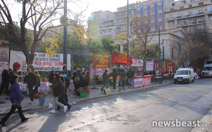 Στον χώρο του ιδρύματος έχουν πάρει τη θέση τους μέλη φοιτητικών παρατάξεων και συλλόγων, ενώ στα πεζοδρόμια των οδών Πατησίων και Στουρνάρη έχουν στηθεί τα τραπεζάκια των πολιτικών οργανώσεων.