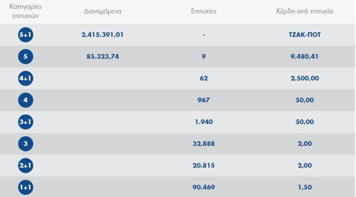 Οι τυχεροί αριθμοί του ΤΖΟΚΕΡ: 9, 15, 18, 24, 30 ΤΖΟΚΕΡ: 10