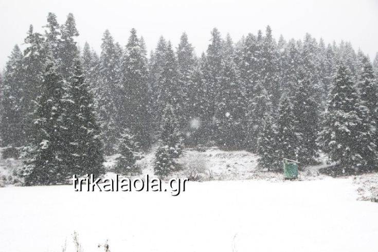 Το πρώτο χιόνι άρχισε να πέφτει τα ξημερώματα σε ορεινές περιοχές άνω των 1.000 μέτρων στον νομό Τρικάλων.