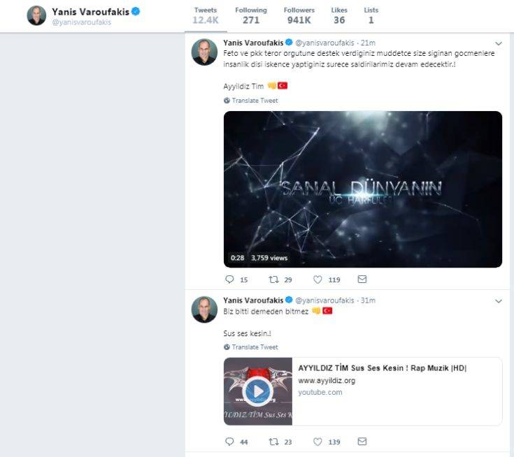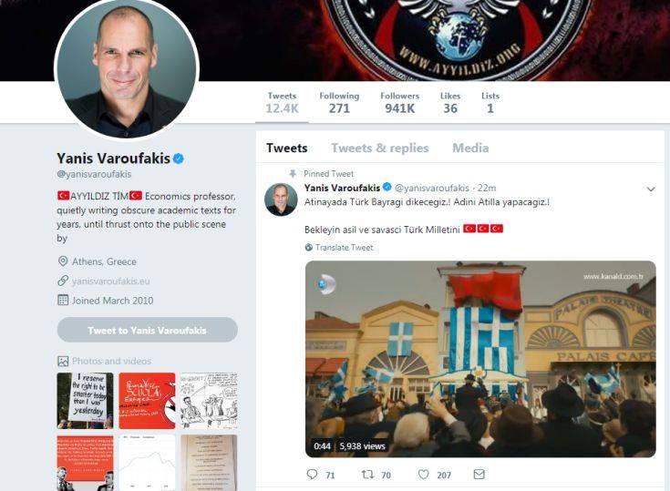Επίθεση από Τούρκους χάκερ δέχθηκε το βράδυ της Παρασκευής ο επίσημος λογαριασμός του Γιάννη Βαρουφάκη στο Twitter.