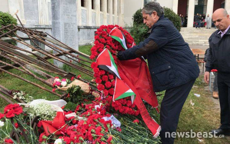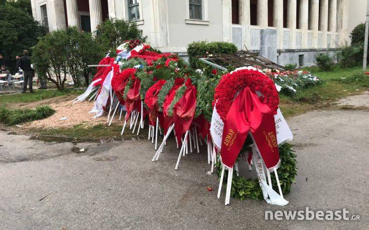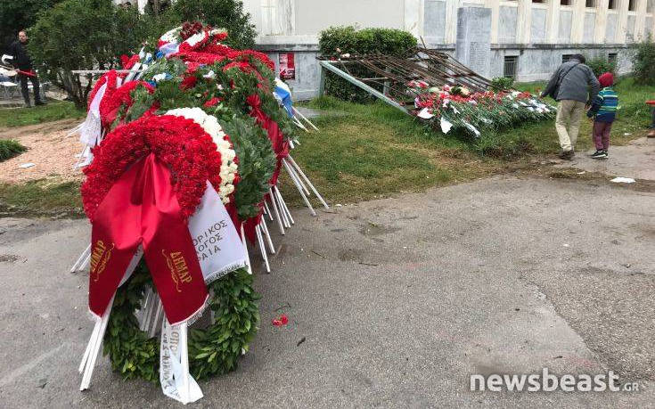 Η προσέλευση, προς το παρόν, είναι μικρή. Παρά τη βροχή, ωστόσο, γονείς με παιδιά και παππούδες με εγγόνια, προσέρχονται για να αποτίσουν φόρο τιμής στους φοιτητές που πριν από 45 χρόνια έχασαν εδώ τη ζωή τους.