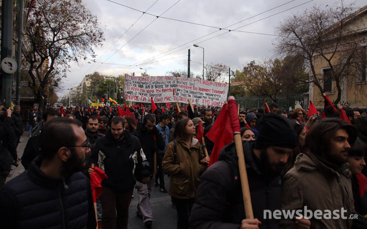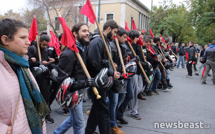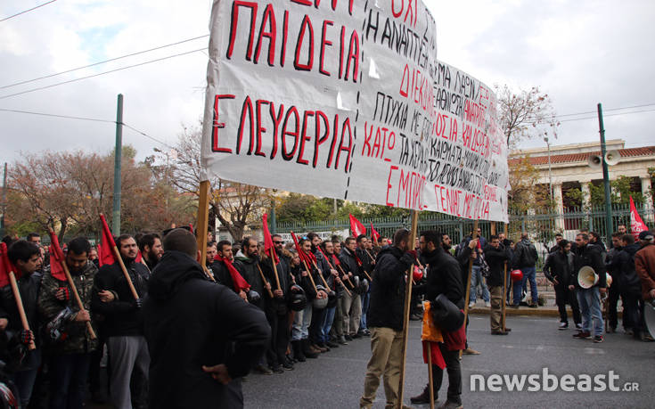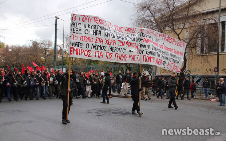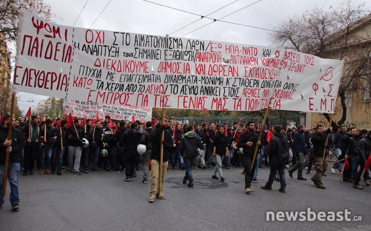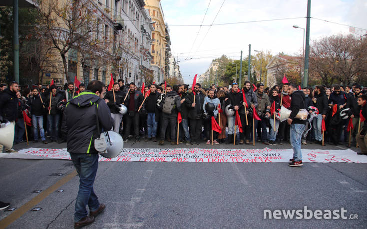 Οι φοιτητικοί σύλλογοι με πορεία κατευθύνονται στην πλατεία Κλαυθμώνος όπου θα περιμένουν τον κύριο όγκο της διαδήλωσης.