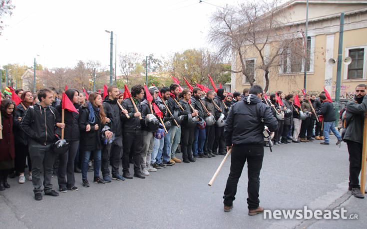 Φοιτητικοί σύλλογοι συγκεντρώθηκαν έξω από το πολυτεχνείο επί της οδού Πατησίων, ενώ έκλεισαν κι οι πύλες του κτιρίου.
