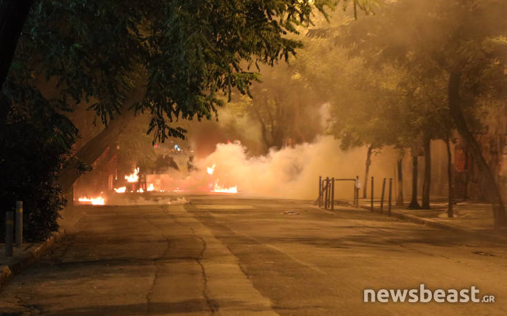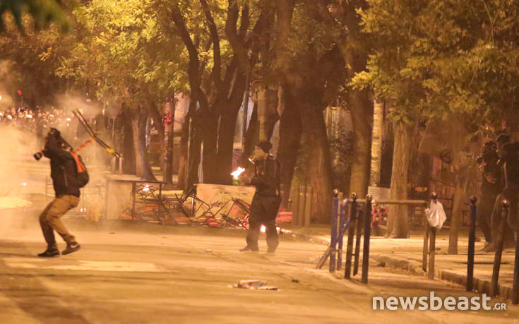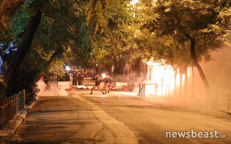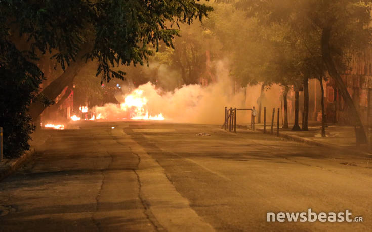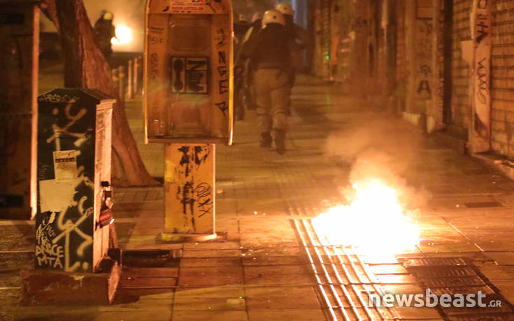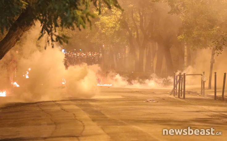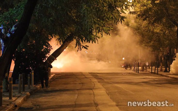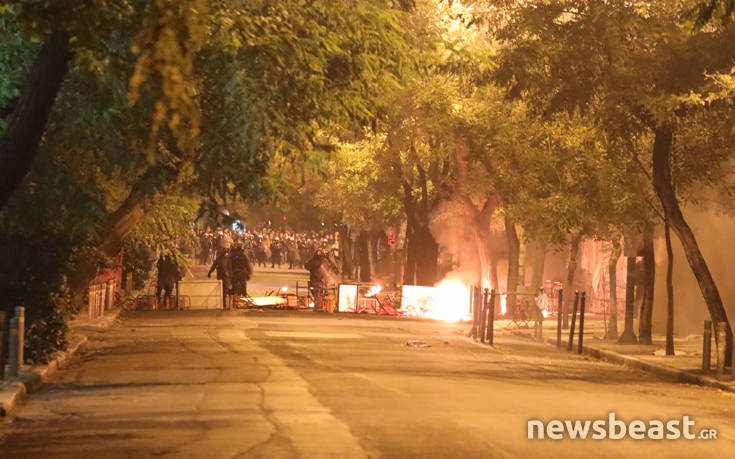 Επεισόδια σημειώνονται αυτήν την ώρα στην περιοχή των Εξαρχείων, με κουκουλοφόρους να επιτίθενται με μολότοφ και πέτρες σε αστυνομικούς και τις δυνάμεις των ΜΑΤ να απαντούν με χρήση χημικών.