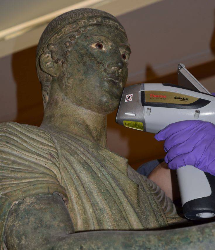 Τα μεγάλα χάλκινα γλυπτά, ελληνικά και ρωμαϊκά, είναι εξαιρετικά σπάνια. Η κ.Ντεσάμπ θα τονίσει στην ομιλία της ότι ο Ηνίοχος των Δελφών, που αναγνωρίζεται ως ένα από τα σημαντικότερα αριστουργήματα της αρχαίας γλυπτικής, καταλαμβάνει, από την αποκάλυψή του το 1896, μια προνομιακή θέση. Αλλά αν και το σύμπλεγμα γλυπτών στο οποίο ανήκε έγινε αντικείμενο πολλών μελετών, στιλιστικών και επιγραφικών, αν και γνωρίζουμε τη χρονολόγησή του εδώ και λίγα χρόνια, την αρχική θέση του στο ιερό του Απόλλωνα και την ταυτότητα αυτού που το πρόσφερε (Πολύζαλος, τύραννος της Γέλας στη Σικελία), δεν έχουν γίνει για περισσότερο από έναν αιώνα παρά επιφανειακές τεχνολογικές εξετάσεις του γλυπτού. Για το λόγο αυτό η Εφορεία Αρχαιοτήτων Φωκίδας υπέγραψε συμφωνία με τη Γαλλική Σχολή Αθηνών και το Μουσείο του Λούβρου, προκειμένου να επαναλάβει και να ολοκληρώσει, σε συνεργασία με το Κέντρο Έρευνας και Αποκατάστασης των Μουσείων Γαλλία, τη μελέτη του πιο διάσημου αυτού αφιερώματος στους Δελφούς.