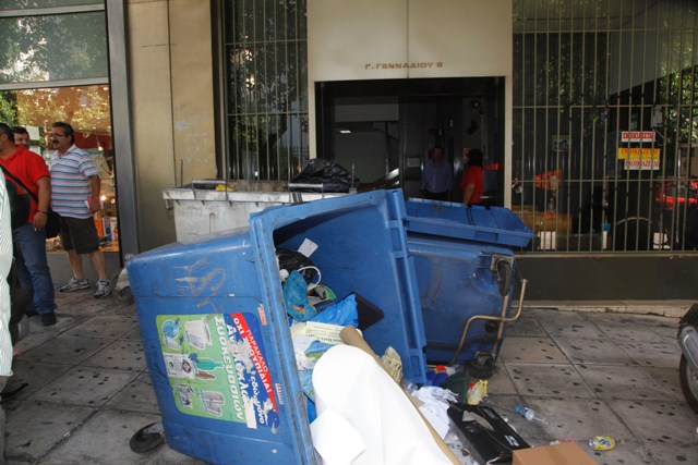Εργαζόμενοι στην Τοπική Αυτοδιοίκηση αποδοκίμασαν λεκτικά, έριξαν σκουπίδια και καφέδες εναντίον χαμηλόβαθμων στελεχών της τρόικας που προσπάθησαν να προσεγγίσουν το κτίριο της ΚΕΔΕ, προκειμένου να συζητήσουν με αντιπροσωπεία του Δ.Σ. των δημάρχων της χώρας τις σχεδιαζόμενες περικοπές στην Τοπική Αυτοδιοίκηση.