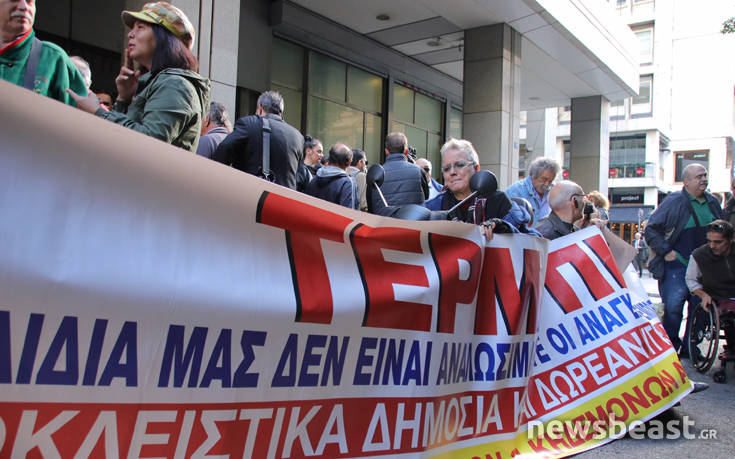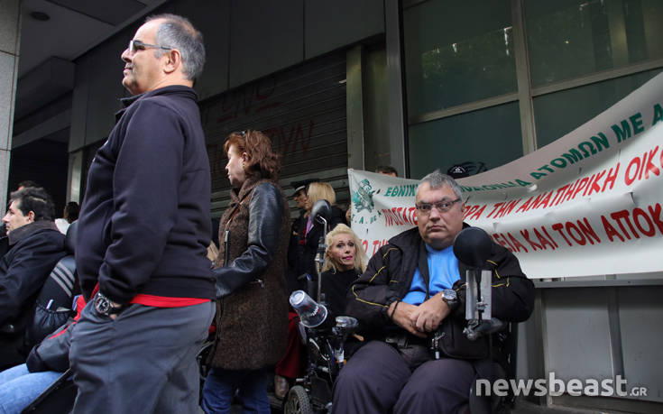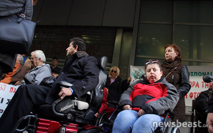Σε παράσταση διαμαρτυρίας έξω από το υπουργείο Οικονομικών προχώρησαν -όπως ήταν προγραμματισμένο- μέλη της Εθνικής Συνομοσπονδίας Ατόμων με Αναπηρία στην Αττική.