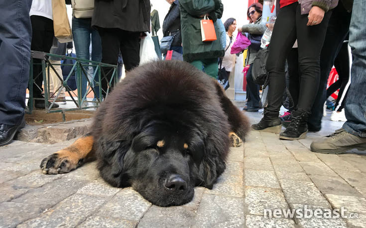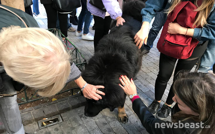 Στο κέντρο της Αθήνας υπήρξε κοσμοσυρροή και σε ένα πεζοδρόμιο, αλλά όχι γιατί ο κόσμος ήθελε να αγοράσει κάτι. Απλώς, ήθελε να χαϊδέψει έναν γιγάντιο μαύρο σκύλο, ο οποίος συγκέντρωσε επάνω του όλους τους περαστικούς.