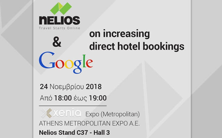 Πιο συγκεκριμένα, το Σάββατο, 24 Νοεμβρίου στις 18:00 η Nelios ενώνει τις δυνάμεις της με τη Google και υποδέχεται στο περίπτερό της τον Analytical Consultant in the Travel Sector Google, Απόστολο Παραδέλλη για μία εφ όλης της ύλης συζήτηση σχετικά με το πώς μπορούμε να αυξήσουμε τις απευθείας κρατήσεις των ξενοδοχείων.