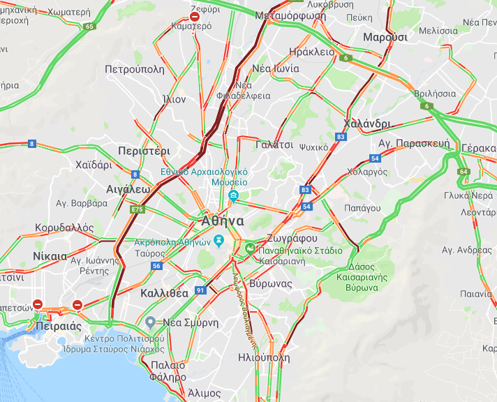 Λίγο μετά τις 8 το πρωί στον Κηφισό σχηματίζονταν ουρές χιλιομέτρων και στα δύο ρεύματα από το ύψος της Κηφισιάς μέχρι το Μοσχάτο.