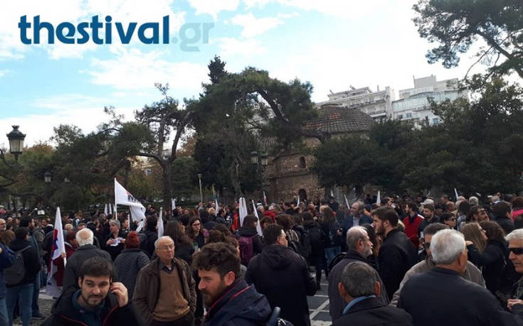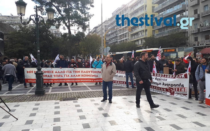 Συγκέντρωση στο πλαίσιο της εικοσιτετράωρης γενικής απεργίας που έχει κηρύξει για σήμερα η Γενική Συνομοσπονδία Εργατών Ελλάδας (ΓΣΕΕ), πραγματοποιεί το ΠΑΜΕ στο κέντρο της Θεσσαλονίκης.