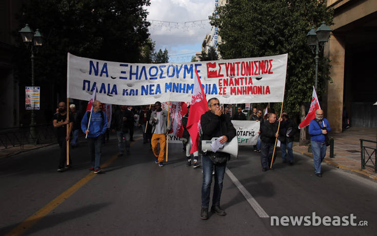 Μέλη σωματείων και εργατικών κέντρων συγκεντρώθηκαν, νωρίτερα, στην πλατεία Κλαυθμώνος και κατευθύνονται αυτή την ώρα στη Βουλή.
