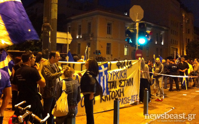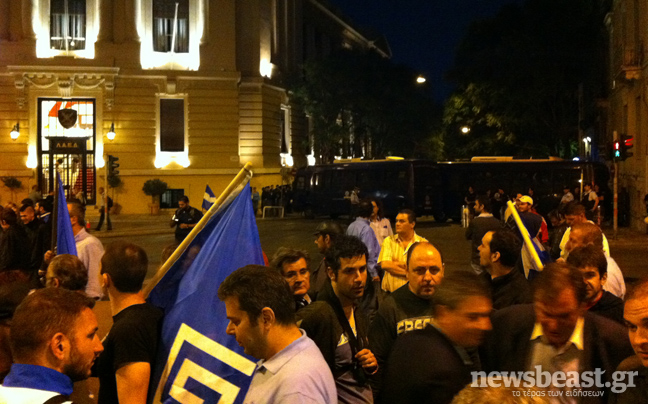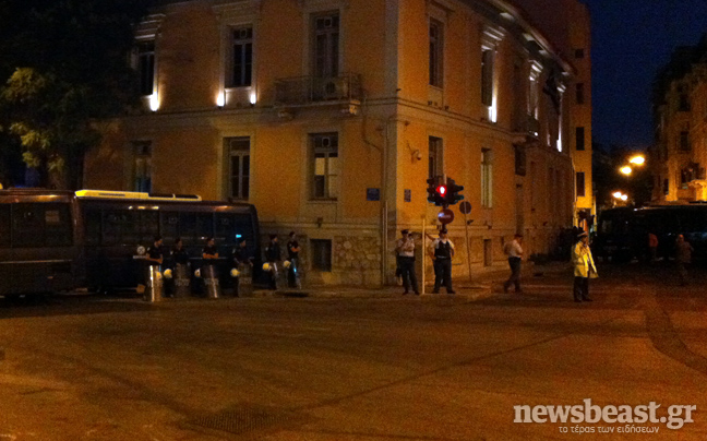 Συγκέντρωση στη συμβολή των οδών Ρηγίλλης και Βασιλίσσης Σοφίας, μπροστά στο μνημείο των Ιμίων, πραγματοποιεί αυτή την ώρα το «Εθνικό Μέτωπο», υπό την επίβλεψη ισχυρών αστυνομικών δυνάμεων.