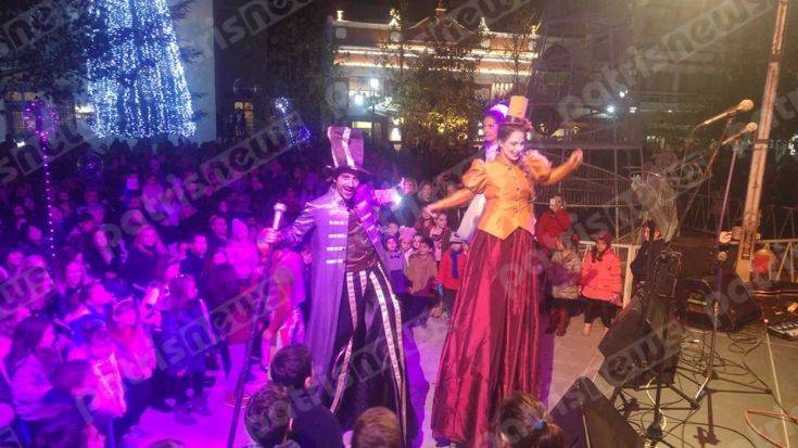 Η φωταγώγηση συνοδεύτηκε από παρουσία ξυλοπόδαρων σαλτιμπάγκων, ενώ ακόμα πιο εορταστικό χαρακτήρα έδωσε η εμφάνιση των νεαρών Ηλείων τραγουδιστών Νικόχρηστου Λαμπαούνα και Κωνσταντίνου Προκόπη (που έχουν εμφανιστεί και στο τηλεοπτικό «The voice»)…
