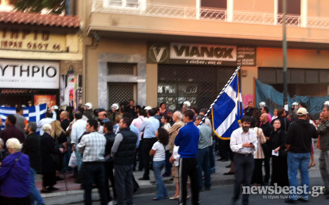 Στο σημείο βρίσκεται και ο βουλευτής της Χρυσής Αυγής Ηλίας Παναγιώταρος. Οι παρευρισκόμενοι, γύρω στα 30 άτομα, έψαλλαν τον εθνικό ύμνο και θρησκευτικούς ύμνους.