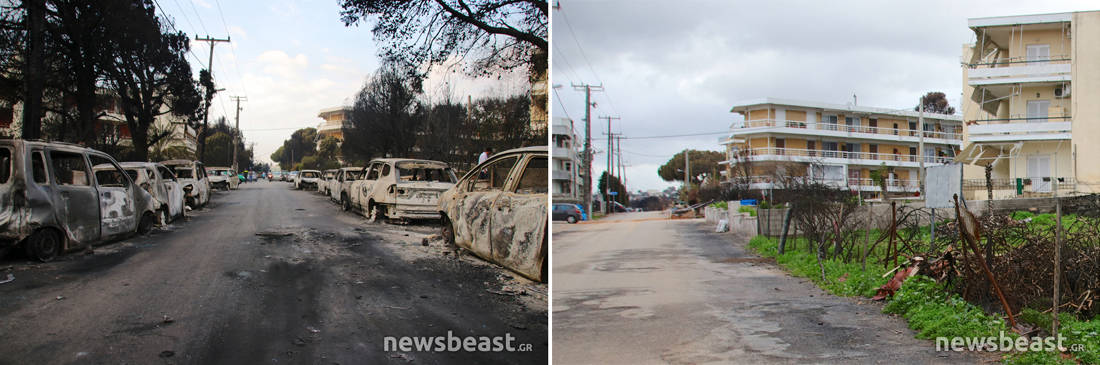 Πέρα απ’ αυτούς που «έφυγαν» για πάντα, άλλοι ξεσπιτώθηκαν τελείως. Όμως δεν εγκαταλείπουν τον τόπο τους. Εδώ μεγάλωσαν, ανάμεσα στα δέντρα που κάηκαν έπαιξαν. Πείσμωσαν και ξαναφτιάχνουν τη ζωή τους που από την μία στιγμή στην άλλη καταστράφηκε.