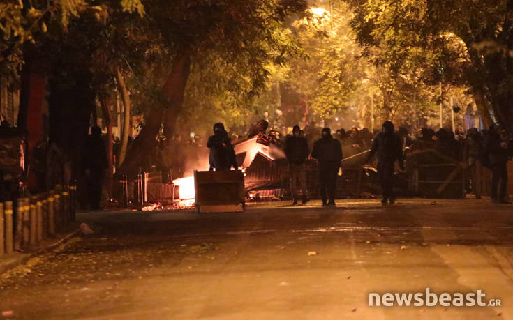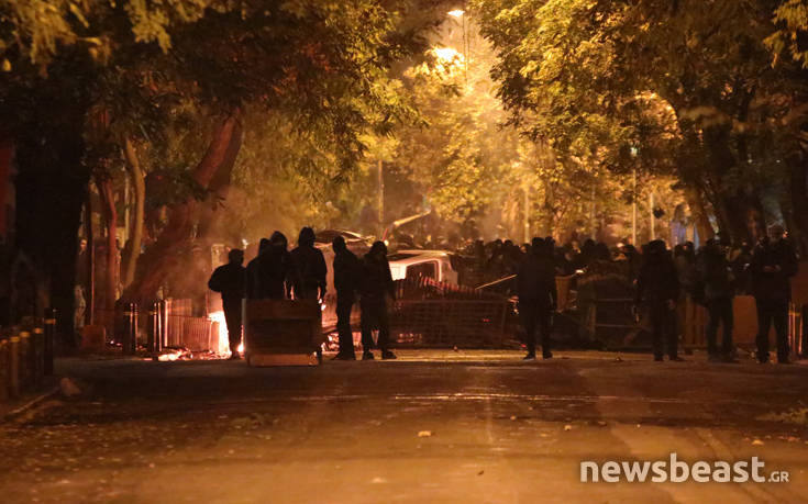 Οδοφράγματα έχουν στηθεί στην περιοχή των Εξαρχείων με αφορμή τη συμπλήρωση 10 χρόνων από τη δολοφονία του Αλέξανδρου Γρηγορόπουλου.