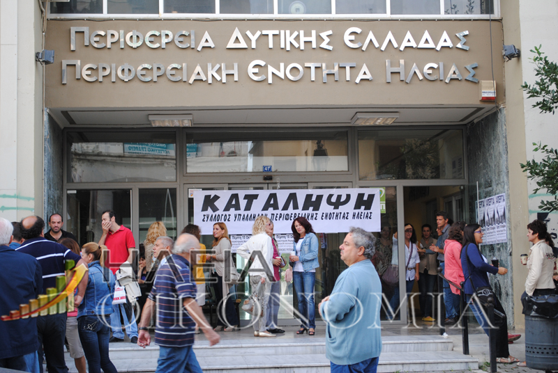 Σε κατάληψη του κτιρίου του Διοικητηρίου της Περιφερειακής Ενότητας Ηλείας προχώρησαν σήμερα το πρωί οι εργαζόμενοι στην Περιφέρεια Δυτικής Ελλάδας.