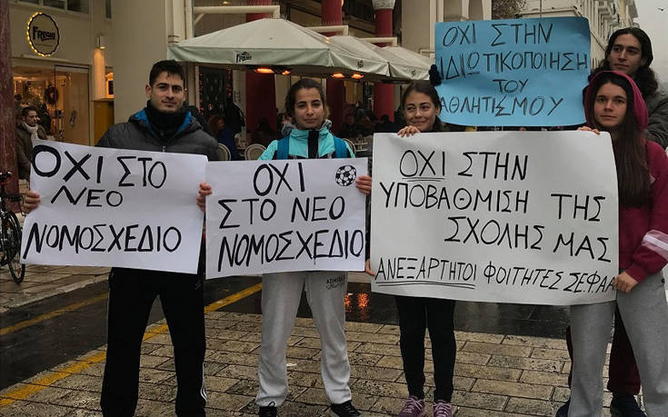 Οι φοιτητές της ΣΕΦΑΑ, φορώντας συμβολικά φόρμες και σφυρίζοντας με τις σφυρίχτρες τους, εξέφρασαν την πλήρη αντίθεσή τους στο Σχέδιο Νόμου με τίτλο «Επιτροπή επαγγελματικού αθλητισμού – Προπονητές και εκπαιδευτές – Ιδιωτικά γυμναστήρια και ιδιωτικές σχολές εκμάθησης αθλημάτων και άλλες διατάξεις», που τέθηκε σε ηλεκτρονική διαβούλευση την Παρασκευή 23 Νοεμβρίου 2018 από το υπουργείο Πολιτισμού και Αθλητισμού.