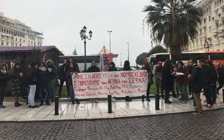 Πορεία στο κέντρο της Θεσσαλονίκης πραγματοποίησαν φοιτητές της Σχολής Επιστήμης Φυσικής Αγωγής και Αθλητισμού (ΣΕΦΑΑ) του Αριστοτελείου Πανεπιστημίου Θεσσαλονίκης (ΑΠΘ).