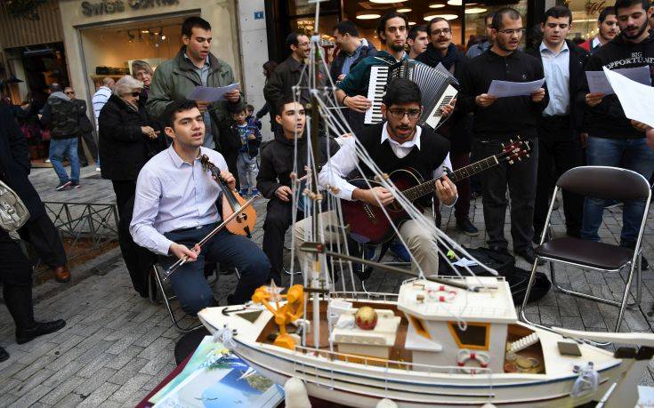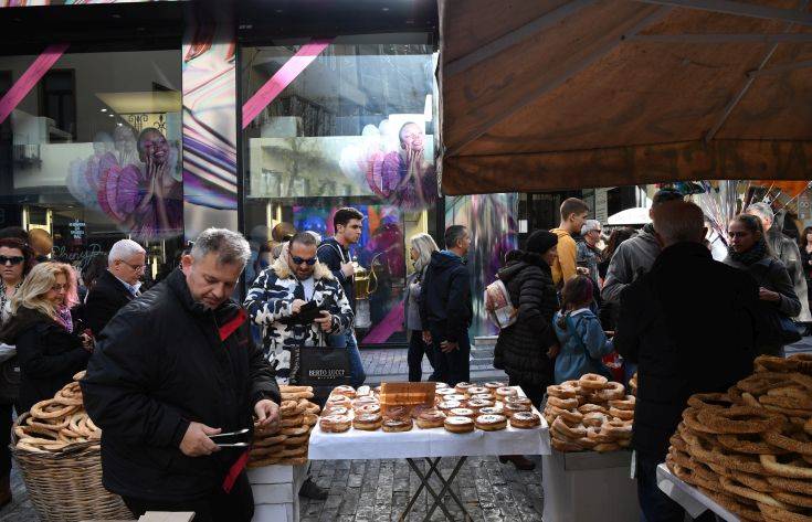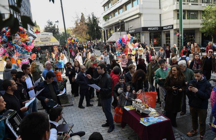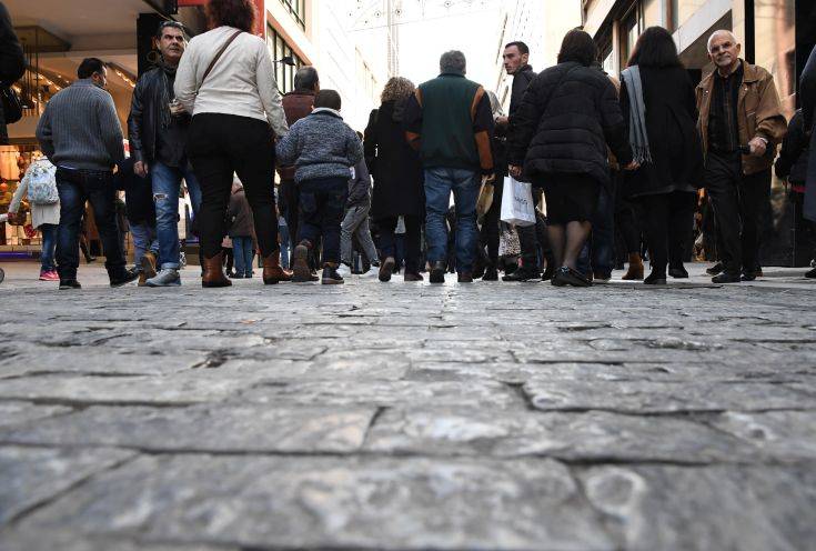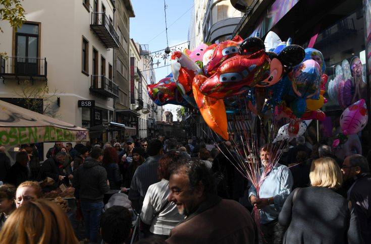 Κοσμοπλημμύρα στην Ερμού με τους Αθηναίους να κάνουν τις βόλτες και τα ψώνια τους λίγες μέρες πριν τα Χριστούγεννα.