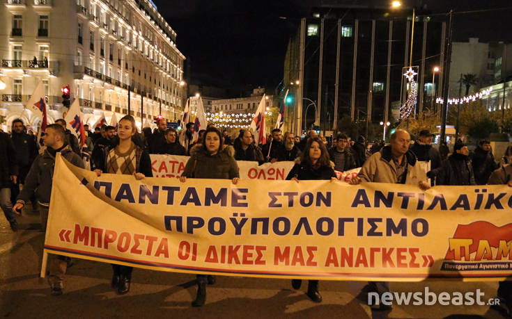 Στη Βουλή έφτασε το απόγευμα η πορεία του ΠΑΜΕ, η οποία ξεκίνησε από την πλατεία Ομονοίας, την ώρα που στην Ολομέλεια συζητείται ο προϋπολογισμός του 2019.