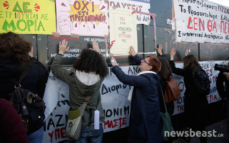 Ένταση επικρατεί έξω από το υπουργείο Παιδείας, όπου έχουν συγκεντρωθεί εκπαιδευτικοί που διαφωνούν με το σχέδιο για τις προσλήψεις και το σύστημα μοριοδότησης για τον διορισμό τους.