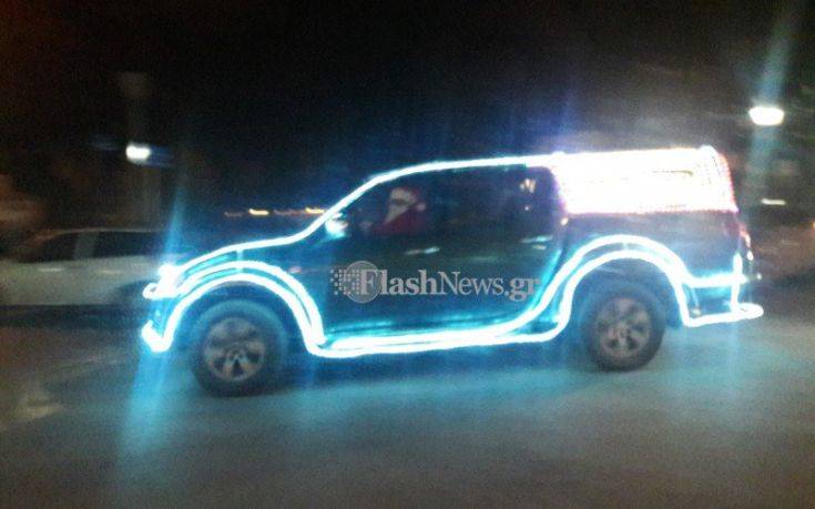 Με το στόμα ανοιχτό έμειναν όσοι είδαν να περνά από μπροστά τους απόψε στο Ηράκλειο ένα αγροτικό αυτοκίνητο το οποίο ήταν στολισμένο από πάνω μέχρι κάτω, περιμετρικά και γεμάτο στην καρότσα με χριστουγεννιάτικα λαμπάκια!