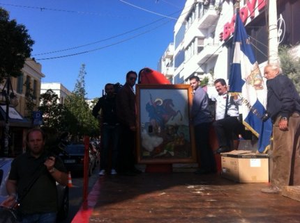 Την καθιερωμένη λιτανεία της εικόνας του Αγίου Δημητρίου … με φορτηγό παρακολούθησαν πολλοί Ηρακλειώτες, σήμερα, στο κέντρο της πόλης.