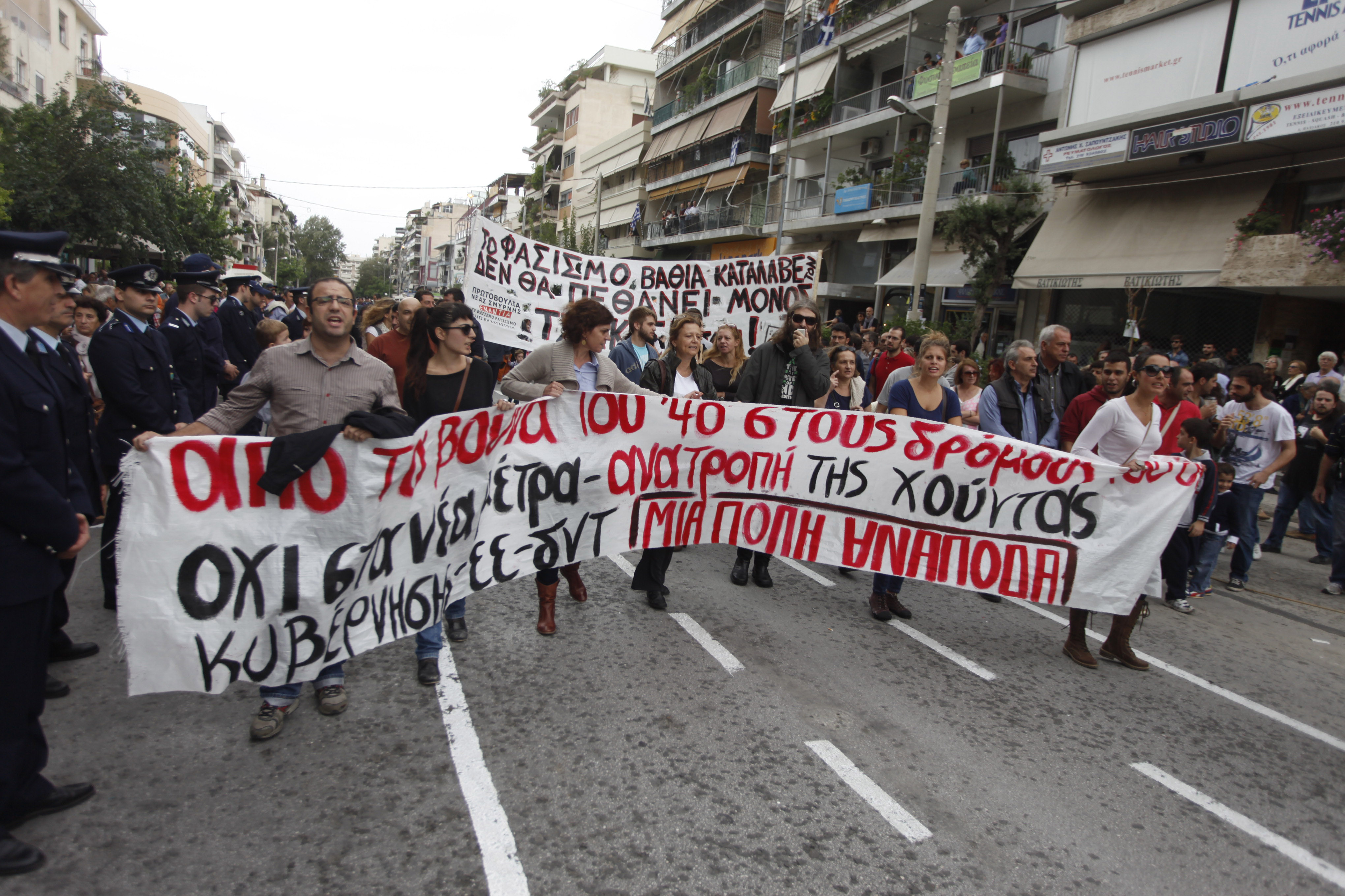 Μεταξύ άλλων στα πανό έγραφαν: «Όχι στη κυβέρνηση των μνημονίων», «Όχι στο φασισμό», «Όχι στο ξεπούλημα».