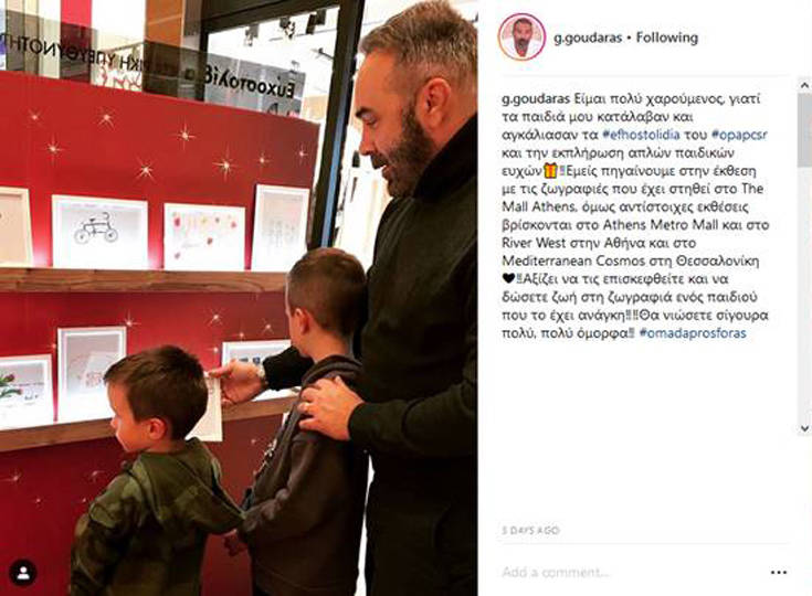 Τα παιδιά έχουν αποτυπώσει τις ευχές τους σε ζωγραφιές, οι οποίες εκτίθενται έως τις 31 Δεκεμβρίου 2018 σε τέσσερις χριστουγεννιάτικες εκθέσεις του ΟΠΑΠ στα εμπορικά πολυκαταστήματα The Mall Athens, Athens Metro Mall και River West στην Αθήνα και στο Mediterranean Cosmos, στη Θεσσαλονίκη. Οι ζωγραφιές είναι, επίσης, διαθέσιμες στην ιστοσελίδα www.omadaprosforas.gr και στην εφαρμογή «Ομάδα Προσφοράς».