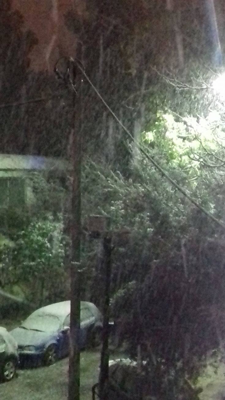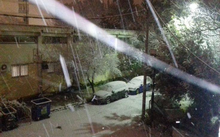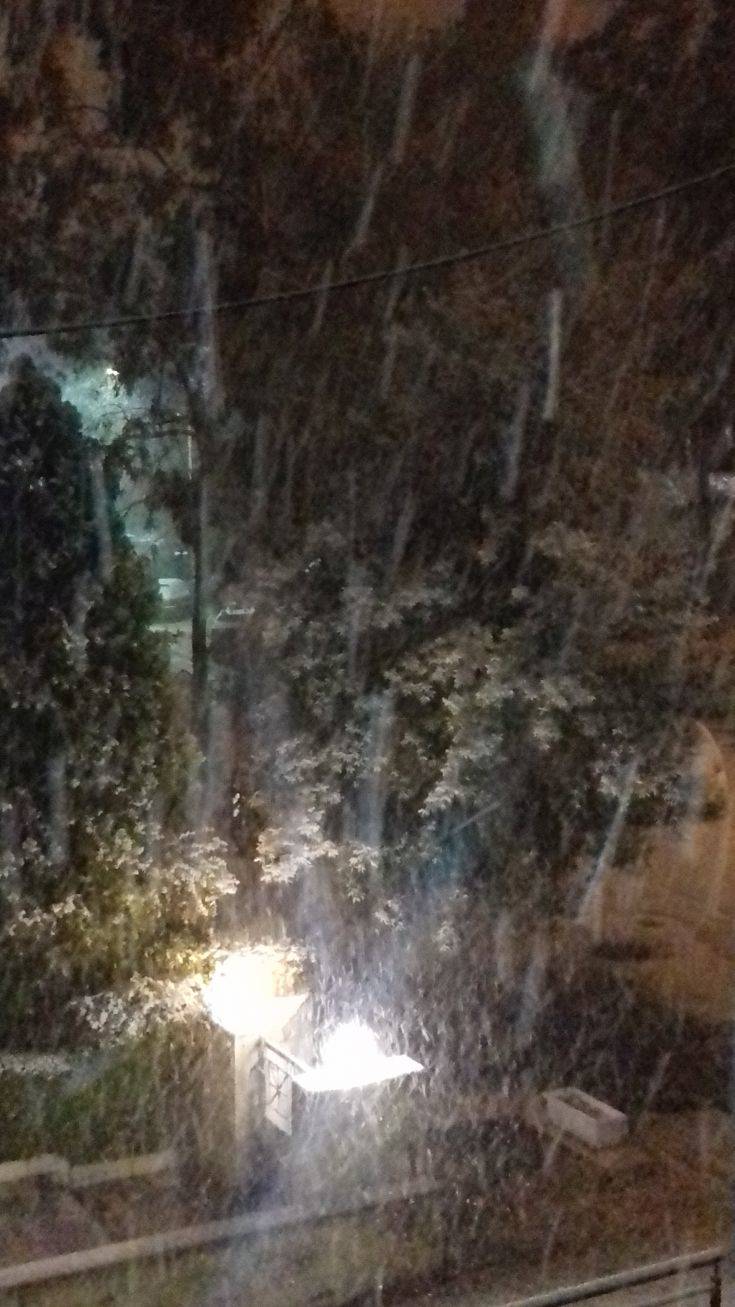 Η χιονόπτωση τα τελευταία λεπτά έγινε πιο έντονη από κάθε άλλη στιγμή απόψε, στην περιοχή, και έτσι το «έστρωσε» ακόμα και στο δρόμο.