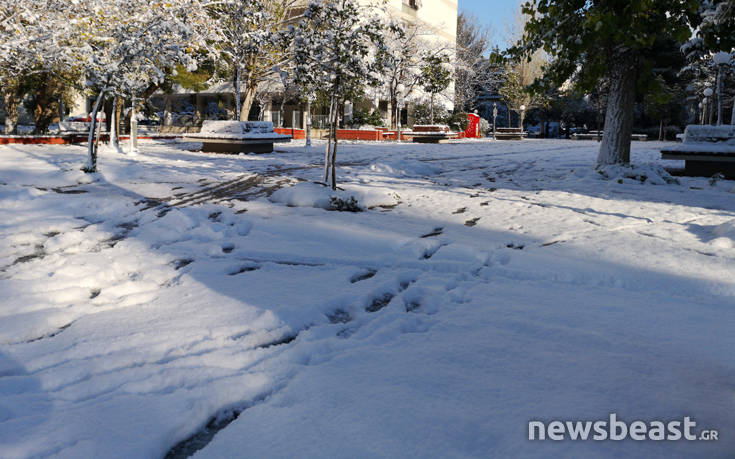 Το newsbeast.gr βγήκε μια πρωινή βόλτα στους δρόμους της πόλης, με τον φακό του να αποτυπώνει το λευκό σκηνικό που έχει διαμορφωθεί.