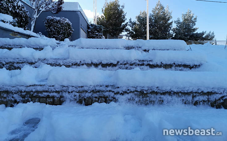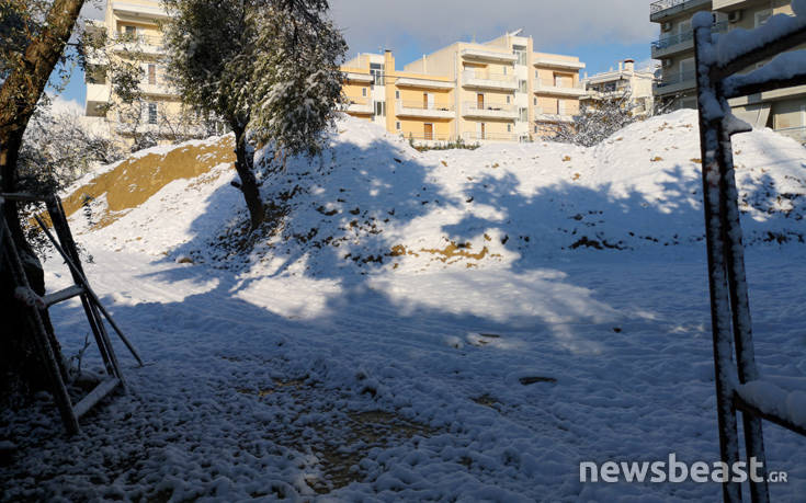 Τα βόρεια προάστια της Αθήνας ήταν από τα σημεία του λεκανοπεδίου που είδαν περισσότερο χιόνι με το πέρασμα του «Τηλέμαχου», με το Μαρούσι να έχει τυλιχτεί σε ένα λευκό πέπλο.