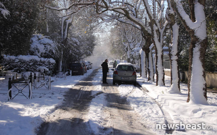 Το newsbeast.gr επισκέφθηκε την Κηφισιά, εκεί που το χιόνι έχει απλώσει ένα λευκό πέπλο σε όλη την πόλη.