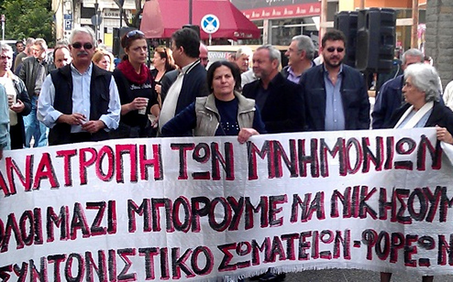 Η εικόνα από τη συγκέντρωση των σωματείων-φορέων στην πλατεία Ειρήνης ήταν απογοητευτική, αφού σε αυτή παρέστησαν μόνο μέλη διοικητικών συμβουλίων συλλόγων και σωματείων και μέλη του ΣΥΡΙΖΑ, σύμφωνα με το cityvoice.gr.