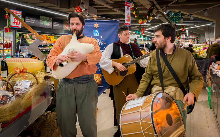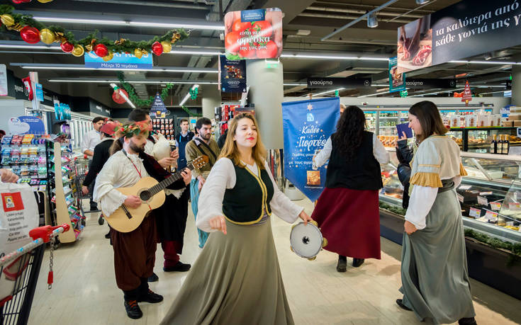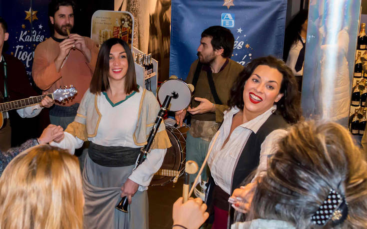 Μέσα από δρώμενο διάρκειας 20’ λεπτών, οι «καλαντιστές» από τον Θεατρικό Οργανισμό «Μορφές Έκφρασης» τραγούδησαν και μετέφεραν τη μαγεία των γιορτών σε επιλεγμένα καταστήματα ΑΒ, με τη συνοδεία τυμπάνων και πνευστών, ενώ οι παραδοσιακές στολές τους από διάφορες περιοχές της χώρας έκλεψαν την παράσταση.