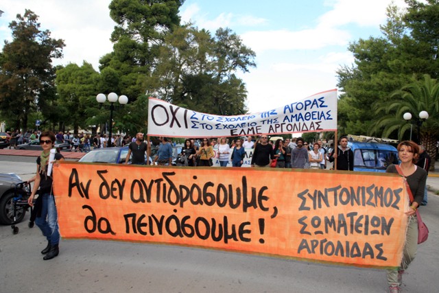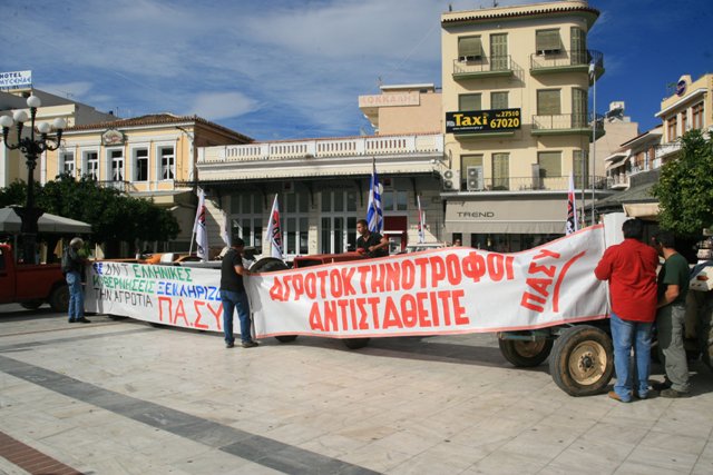 Στο Άργος πραγματοποιήθηκε συγκέντρωση διαμαρτυρίας στην πλατεία Αγίου Πέτρου και πορεία, ενώ οι αγρότες της ΠΑΣΥ και άνεργοι μπλόκαραν τις εισόδους των καταστημάτων δύο τραπεζών κι ακολούθησε πορεία με τρακτέρ.