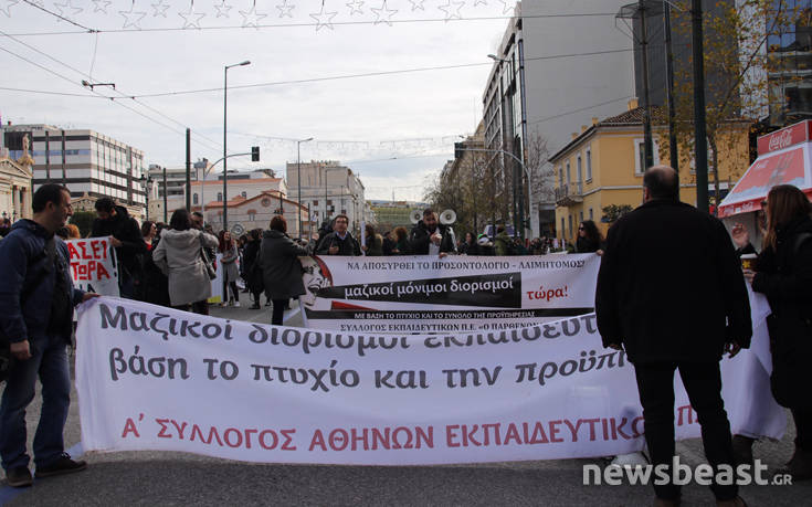 Παράλληλα, ΔΟΕ και ΟΛΜΕ διοργανώνουν συλλαλητήριο στο κέντρο της Αθήνας, στις 13:00, με πορεία προς τη Βουλή. Όπως αναφέρουν σχετικά, το νέο νομοσχέδιο «απαξιώνει την προϋπηρεσία και το πτυχίο και οδηγεί σε ένα αέναο κυνήγι τίτλων και προσόντων με όρους ανισότητας».