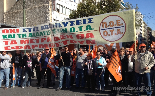 Νωρίτερα, σε ανακοίνωσή της η ΠΟΕ-ΟΤΑ ανέφερε ότι στόχος είναι «η κάθοδος των εργαζομένων της περιφέρειας στην Αθήνα, προκειμένου να εκφράσουν την αντίθεσή τους στα απάνθρωπα και εξοντωτικά μέτρα και το σχέδιο της συγκυβέρνησης για τις επικείμενες απολύσεις, αλλά και για την οικονομική επιτροπεία στους δήμους, που κρύβει απολύσεις, αναγκαστικές μετατάξεις, κατάργηση κοινωνικών υπηρεσιών, νέα μείωση μισθών και αύξηση φόρων στους πολίτες».