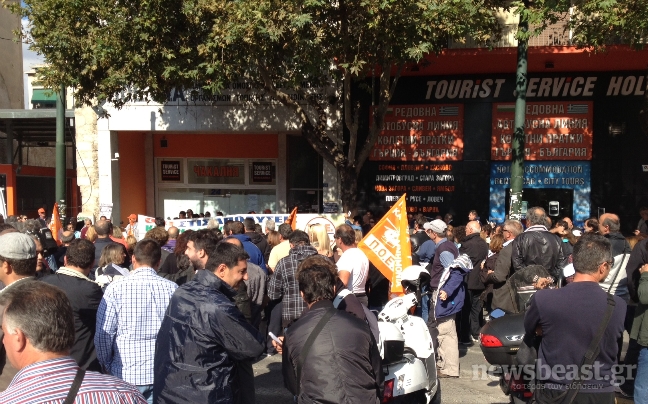 Οι δρόμοι γύρω από την πλατεία Καραΐσκάκη παραμένουν κλειστοί, ενώ ανεβαίνοντας την Αγίου Κωνσταντίνου με κατεύθυνση τη Σταδίου, μέλη της ΠΟΕ – ΟΤΑ φώναξαν συνθήματα κατά της ΔΗΜ.ΑΡ. περνώντας έξω από τα γραφεία του κόμματος.