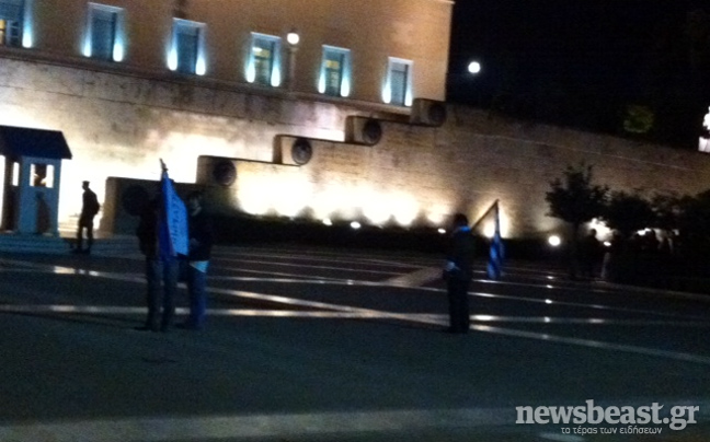 Μικροένταση σημειώθηκε πριν από λίγο στην πλατεία Συντάγματος, όταν δύο διαδηλωτές, κρατώντας ελληνικές σημαίες, έριξαν τα κιγκλιδώματα, μπροστά στη Βουλή και πέρασαν στο χώρο του Μνημείου του Αγνώστου Στρατιώτη.