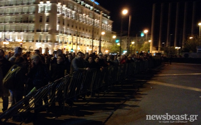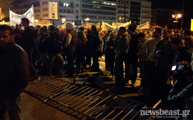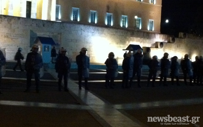 Οι διμοιρίες των ΜΑΤ και των ΥΜΕΤ κατέβηκαν και παρατάχθηκαν κοντά στα κιγκλιδώματα, ενώ και άλλοι διαδηλωτές έχουν εισέλθει στο χώρο μπροστά από τη Βουλή.