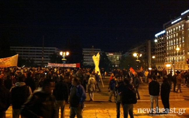 Τα μπλοκ του ΣΥΡΙΖΑ αποχωρούν από τη συγκέντρωση στο Σύνταγμα, ενώ οι υπόλοιποι διαδηλωτές παραμένουν μπροστά από τη Βουλή.