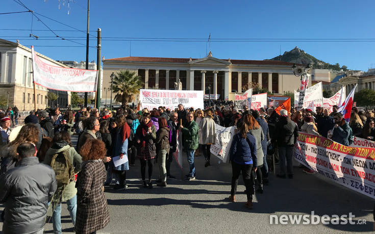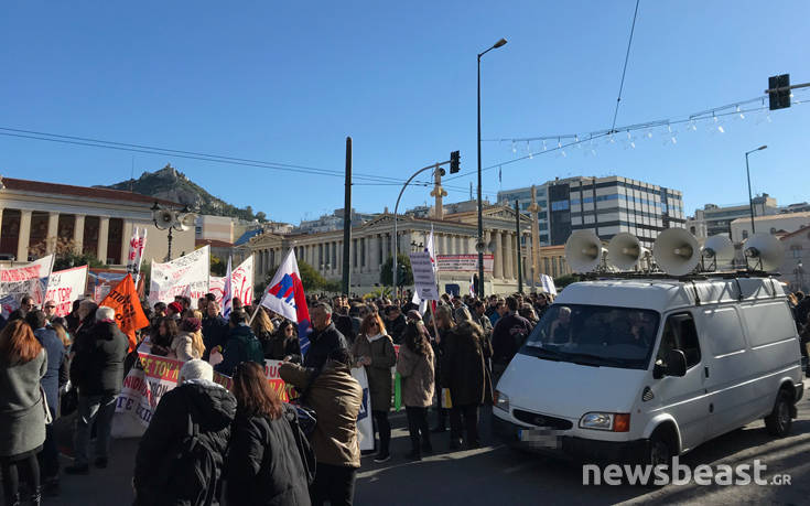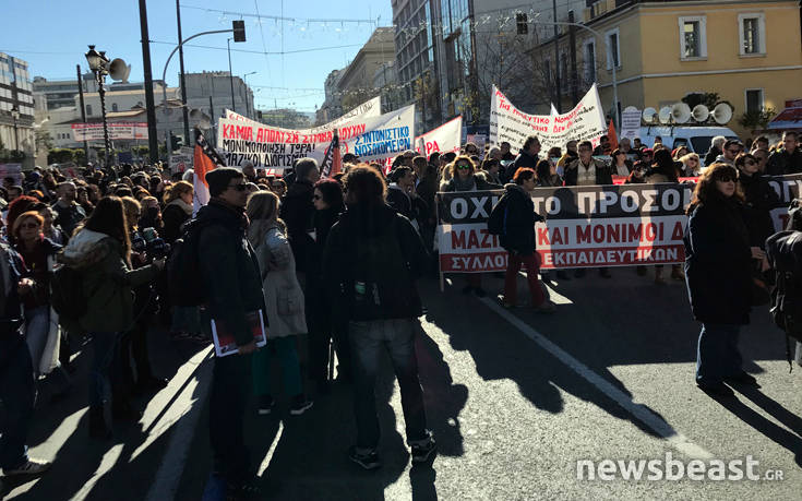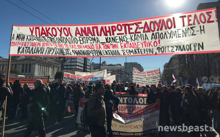 Ένα από τα πανό που κρατούσαν στη συγκέντρωσή τους στα Προπύλαια, γράφει «Υπάκουοι αναπληρωτές – Δούλοι τέλος». Στη συνέχεια θα πραγματοποιηθεί πορεία προς τη Βουλή.
